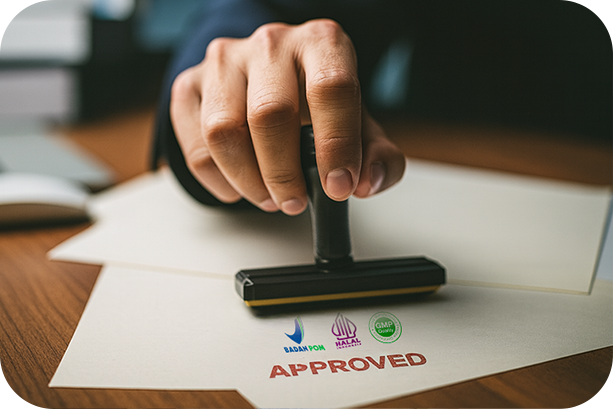 Untuk BPOM dan Halal kami bantu sampai approve dan selesai.
